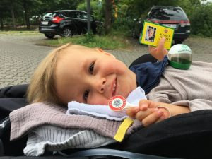 Obwohl in Hessen Ferienanfang war und auch die meisten Leute wohl schon ihr Gehalt hatten war es ziemlich ruhig dort, genau richtig für mich. Und weniger anstrengend für Mama und die anderen, weil man mich dann besser hört und früher mitbekommt wenn ich mal abgesaugt werden muss. Ich konnte mir also ganz in Ruhe und wirklich ausgiebig jedes einzelne Kuscheltier in der Kinderabteilung anschauen!